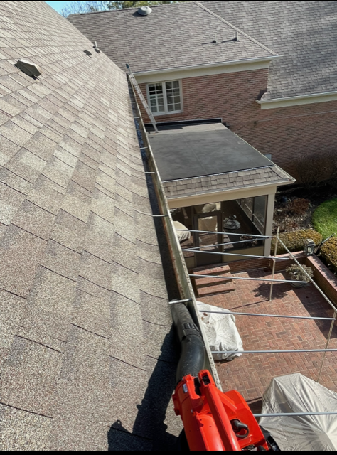 1. Our process of hand cleaning (when applicable) and then finishing by utilizing high powered blowers on gutters and downspouts